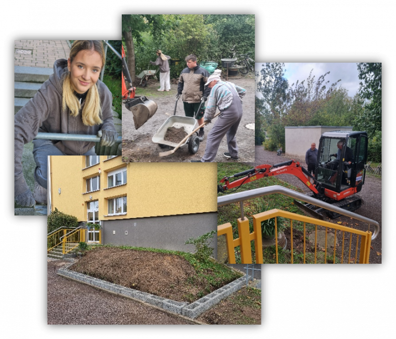 Nachdem die notwendigen Pflanzsteine gekauft und der Minibagger für den 10.10.2024 bestellt waren, konnte die erste Bauphase beginnen. Dabei wurde ich durch Herrn Kittler, Herrn Dr. Diehl und den Hausmeister der Grundschule, Herrn Hübner, mit bautechnischem Knowhow unterstützt.